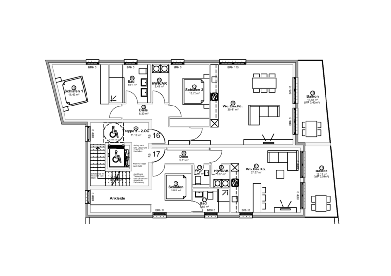 In den Geschossen finden Sie 2 und 3 Zimmer- Wohnungen von 52 m² bis 93 m² und im Staffelgeschoss 3 Penthousewohnungen mit Dachterrassen.